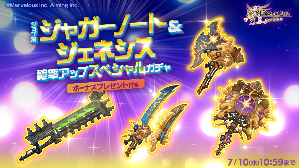 - 『剣と魔法のログレス いにしえの女神』では、「ジャガーノート」「ジェネシス」の確率アップガチャが開催中