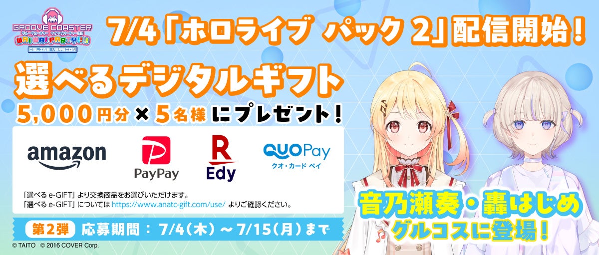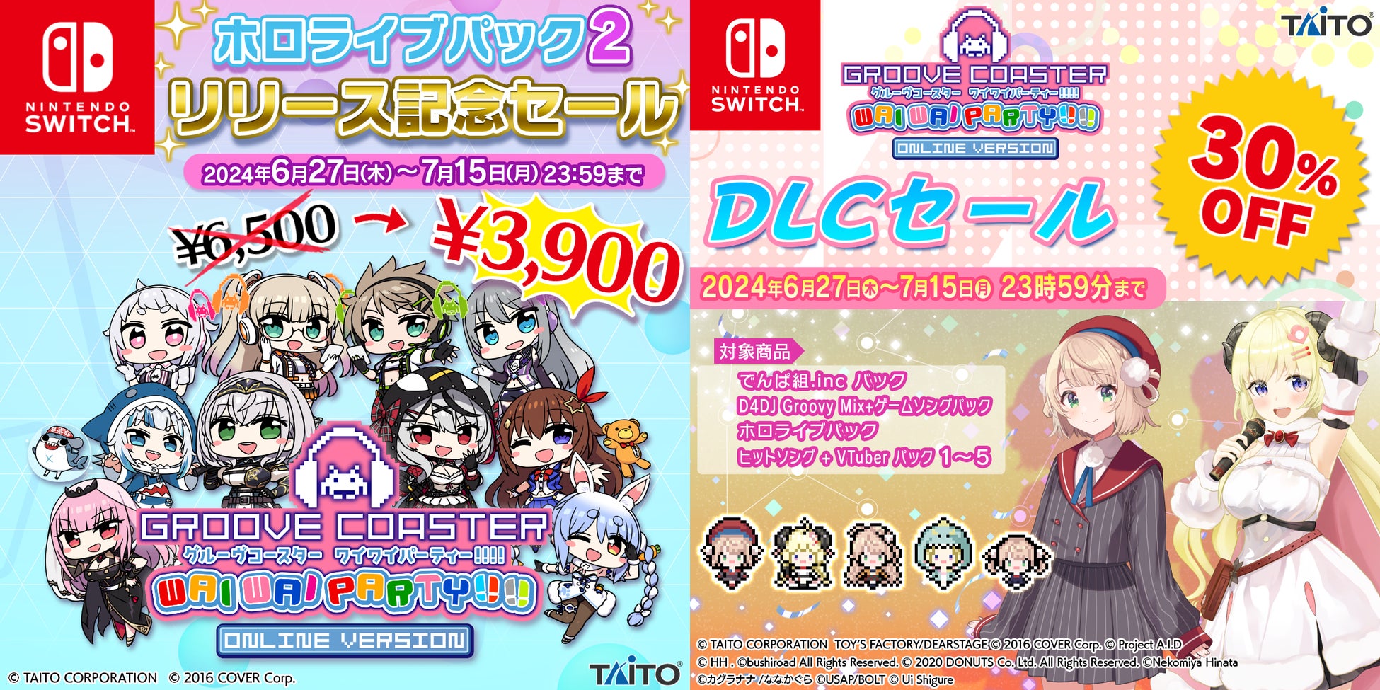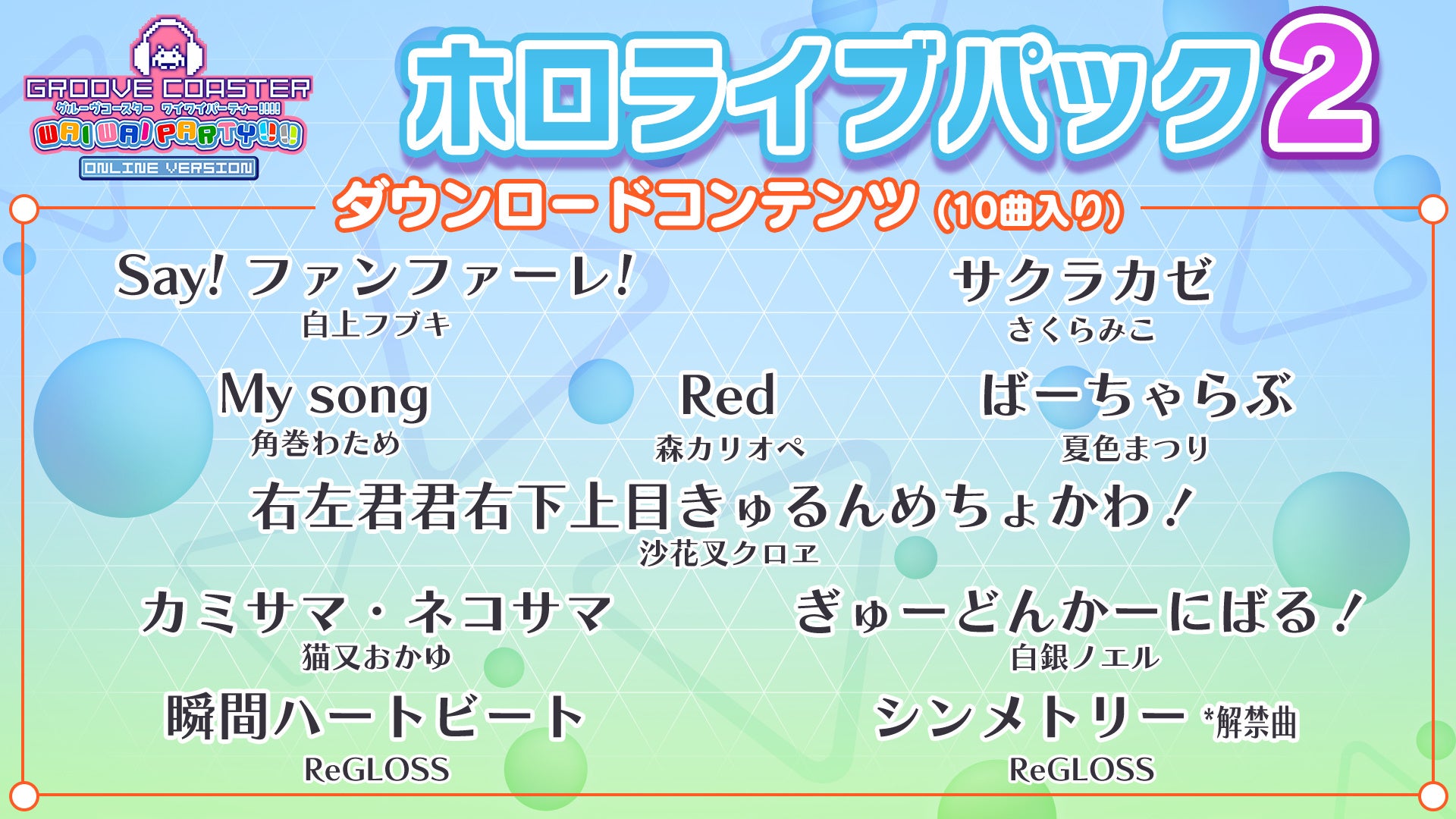 『グルーヴコースター ワイワイパーティー!!!!』に、本日7月4日(木)より「ホロライブ パック2」が配信開始されました。