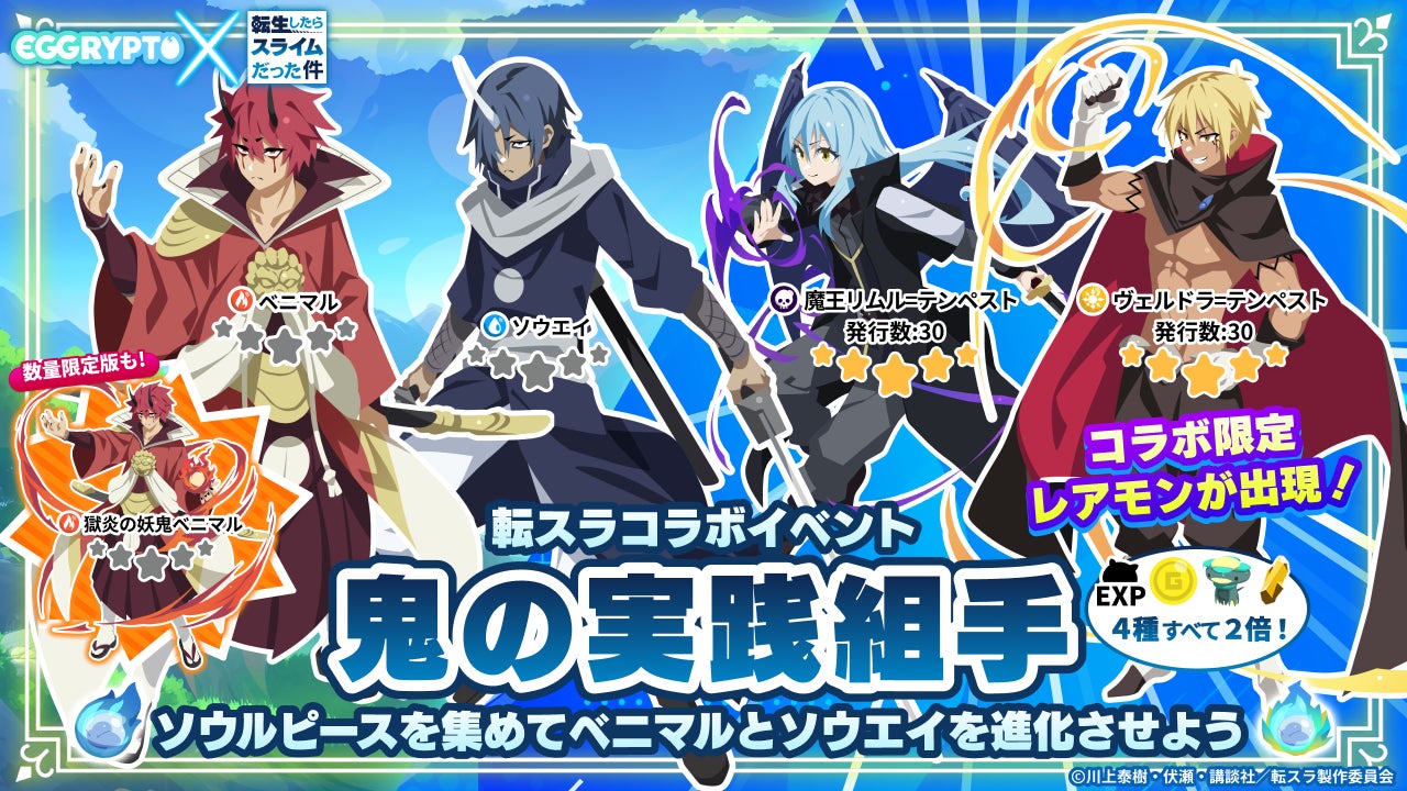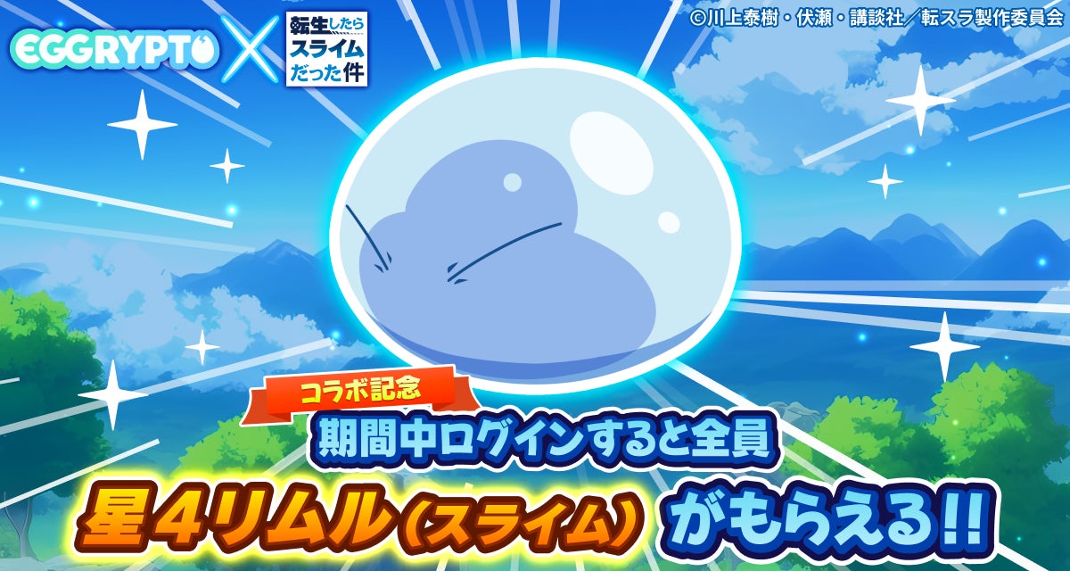 NFTゲーム「EGGRYPTO(エグリプト)」とアニメ「転生したらスライムだった件」のコラボイベントが本日7月5日(金)12時から開催されます。