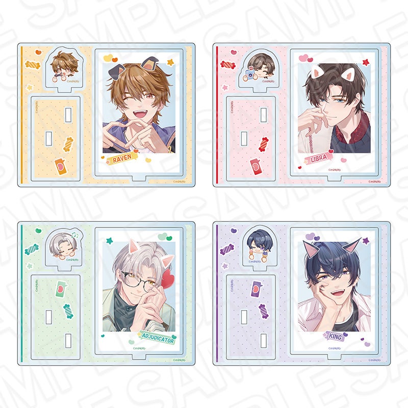 グッズは、SNS風クリアカード、グリッターカンバッジ、ミニアクリルブロック、アクリルキーホルダー、デカンバッチ、アクリルスタンド、アクリルジオラマなど、種類豊富です。