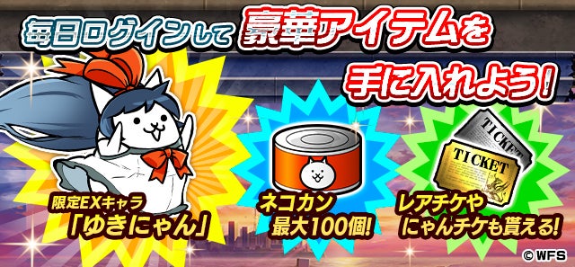 - ログインするだけでコラボ限定EXキャラ「ゆきにゃん」入手可能