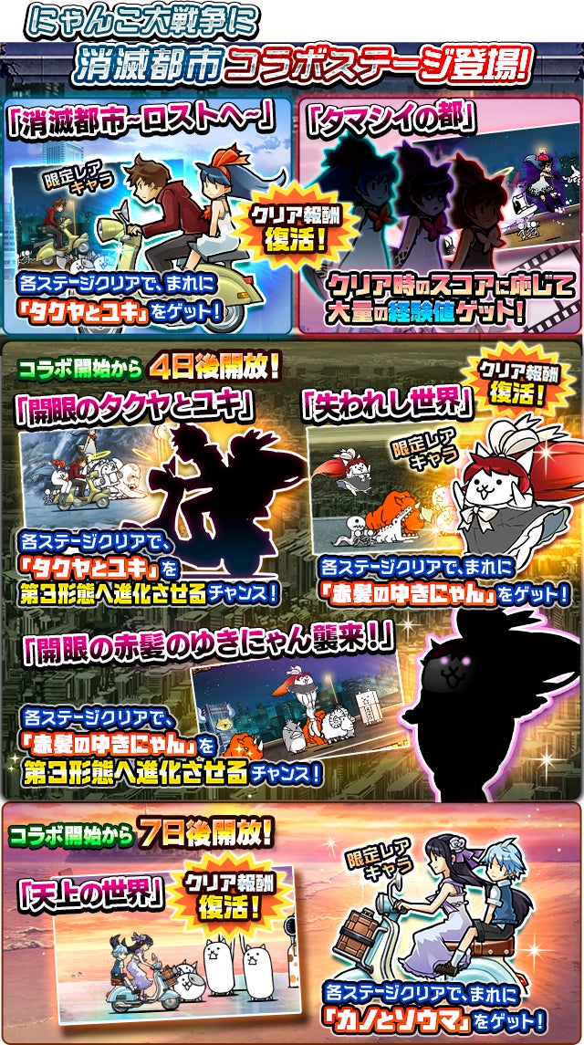 - 2024年7月8日から22日に「消滅都市」×「にゃんこ大戦争」コラボイベント開催