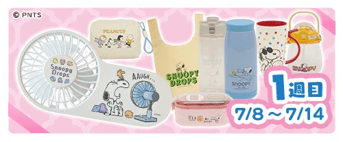 毎週抽選で、スヌーピードロップスのオリジナルグッズを含む、夏にぴったりのスヌーピーグッズが当たります。