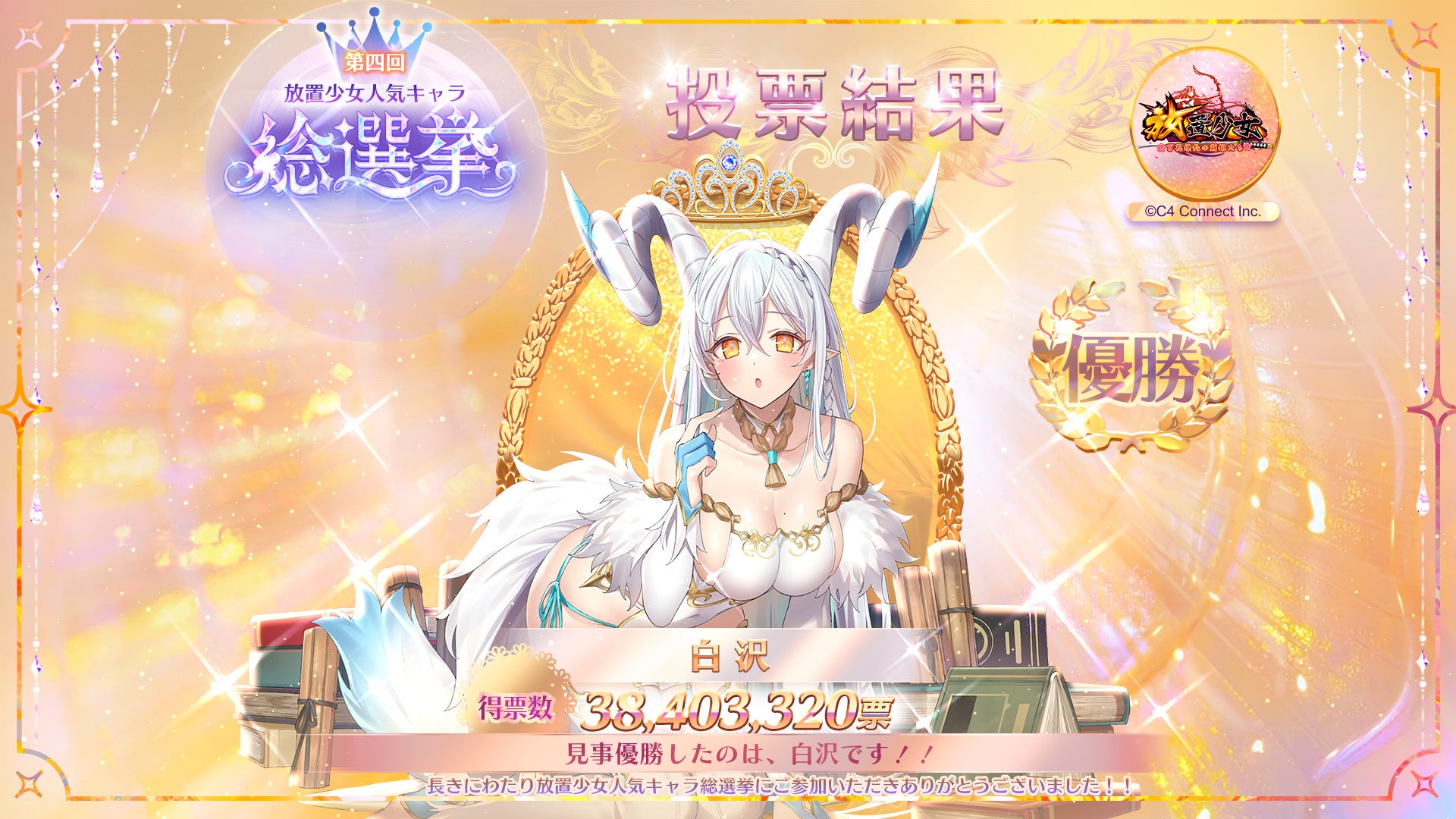 - 「第四回放置少女人気キャラ総選挙」の優勝者は『白沢』