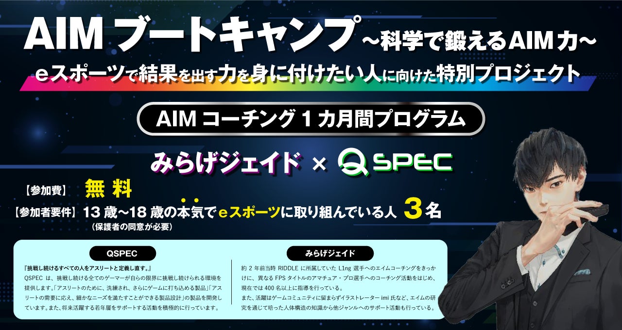 次世代のeスポーツアスリート育成プログラム「AIMブートキャンプ ~科学で鍛えるAIM力~ みらげジェイド × QSPEC」が、7月1日から7月20日まで応募受付中です。