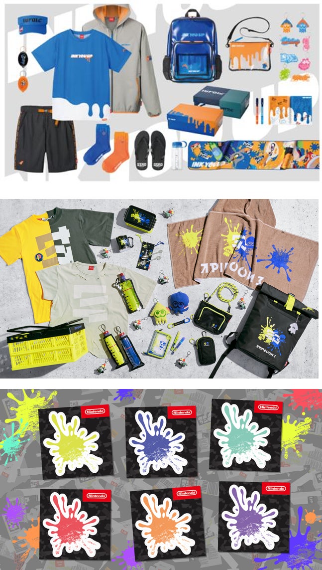 - Nintendo Switch™、オリジナルノベルティ、オリジナルポストカード、オリジナルステッカー、オリジナルリストバンド、オリジナルクリアファイル、スプラトゥーン公式グッズ、スプラトゥーン3関連ゲームソフト、スプラトゥーンシリーズのamiibo、インクステッカー、うちわ