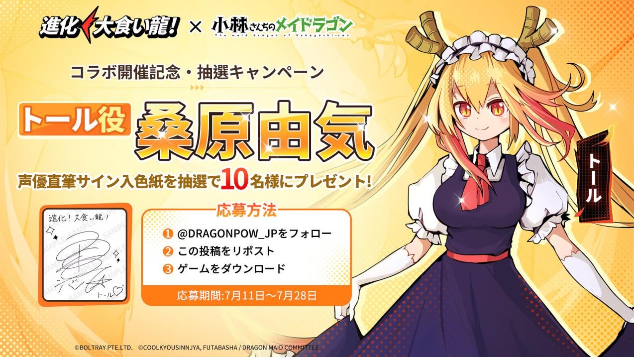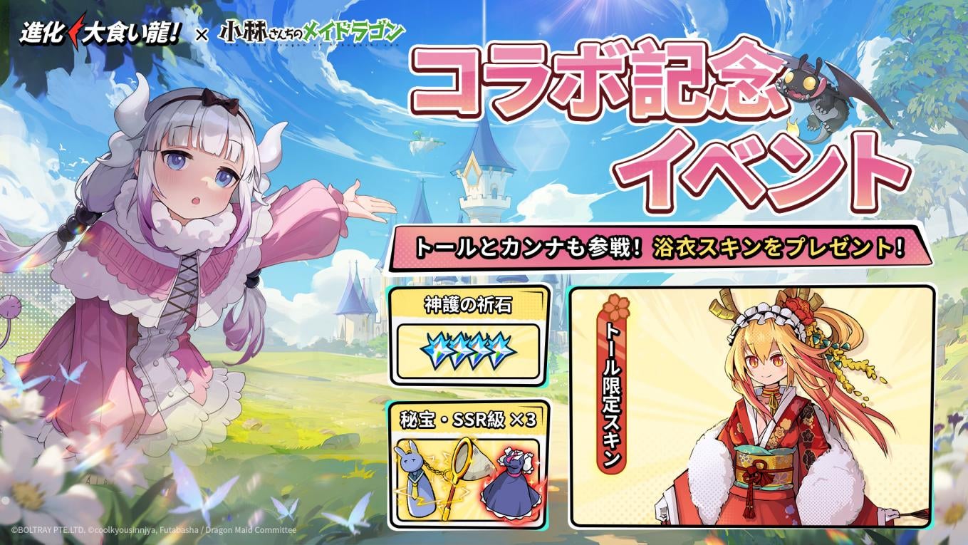 『進化! 大食い龍!』×『小林さんちのメイドラゴン』コラボ開催!「トール」&「カンナ」がドラゴン娘として登場!トールのコラボ限定浴衣コスチュームを無料で手に入れるチャンスも!マジやばくね!