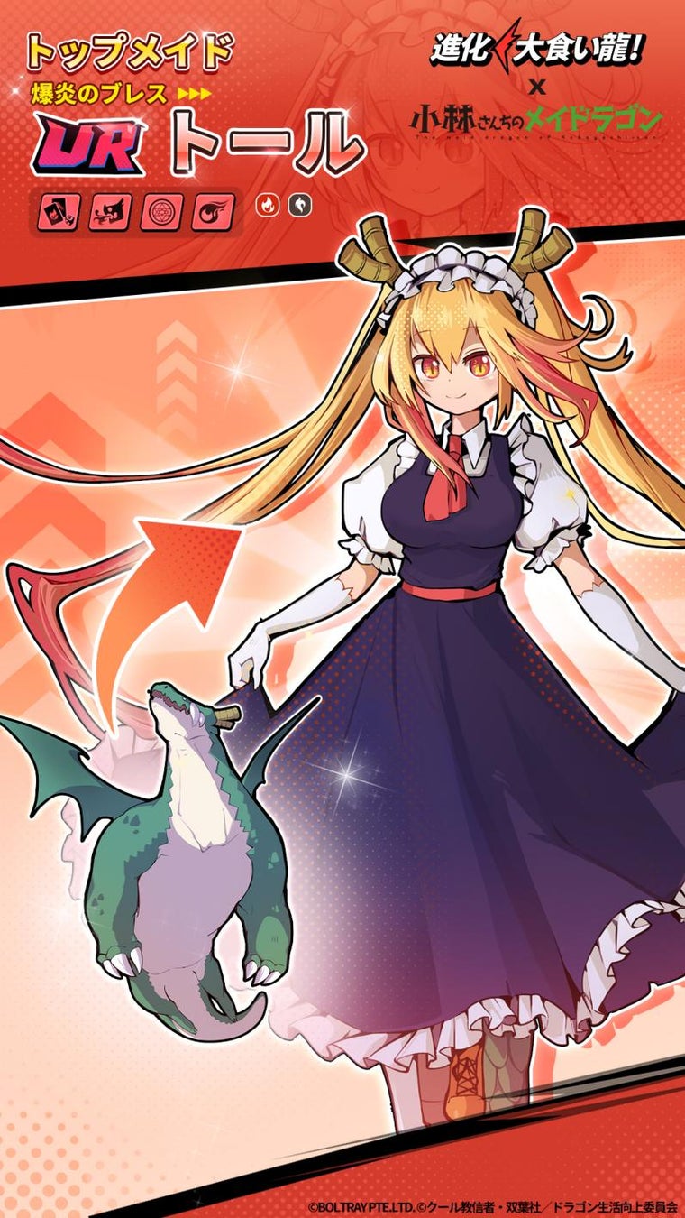 - 進化! 大食い龍!、小林さんちのメイドラゴン、トールの浴衣スキン、竜晶石、神護の祈石、虫取り網、メイド服、ウサギのペンダンド、緋桜の誘い、UR炎属性・武器トール、UR雷属性・ブレイズカンナ