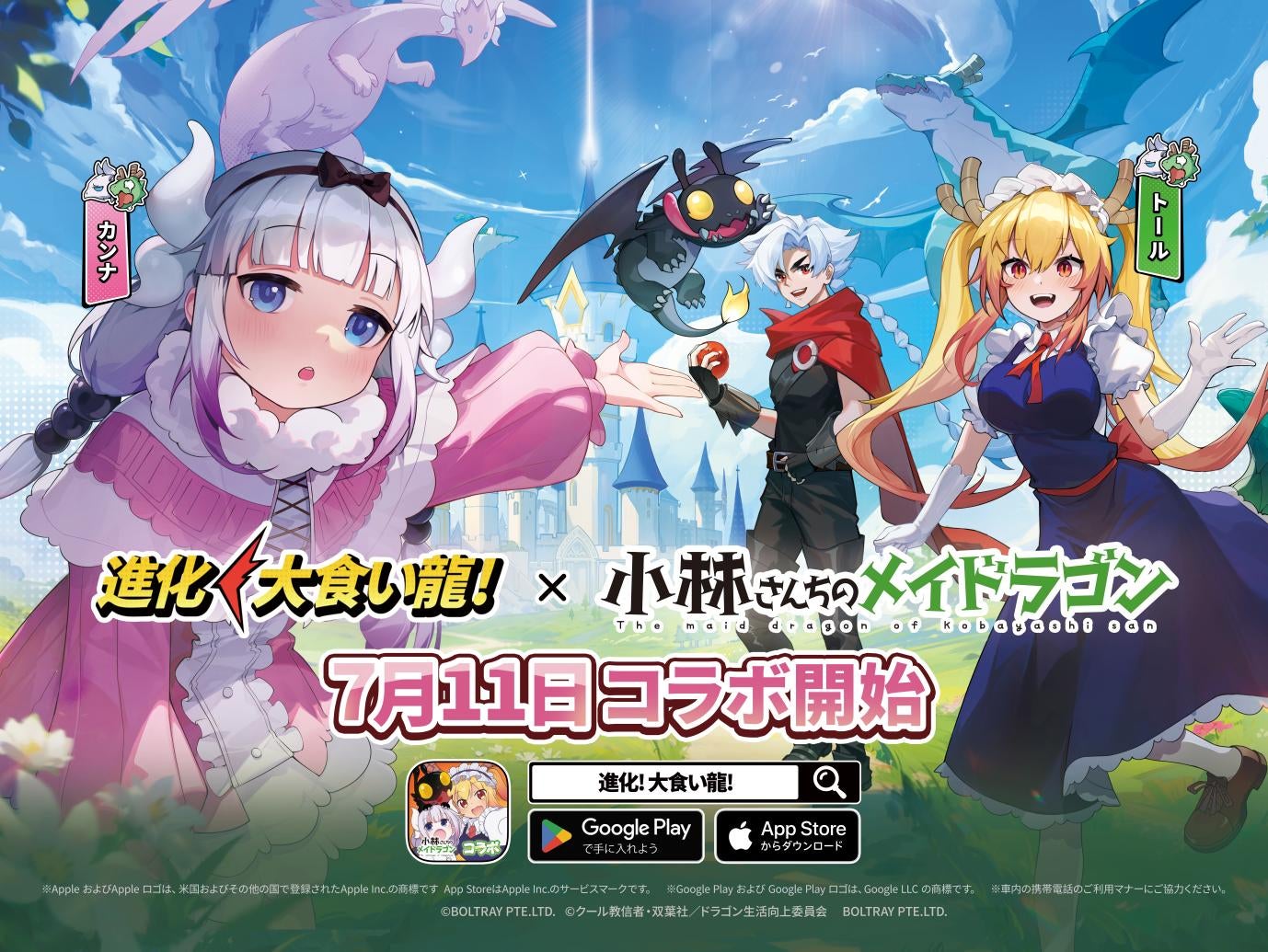 全世界で1,000万ダウンロードを突破した『進化! 大食い龍!』が、7月11日(木)より『小林さんちのメイドラゴン』とのコラボを開催します。