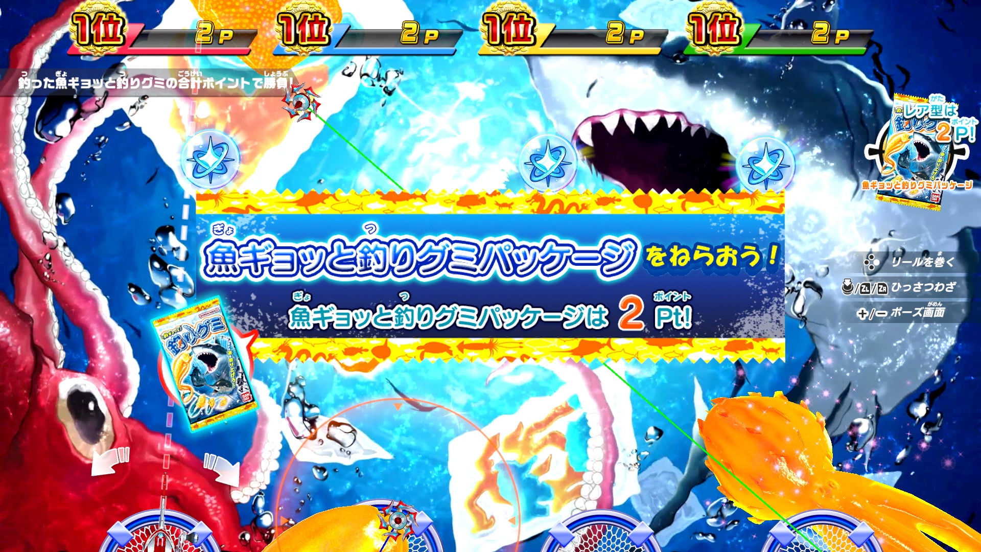 また、「釣スピパーティー」には「魚ギョッと釣りグミつり大会」が追加され、最大4人で対戦できます。