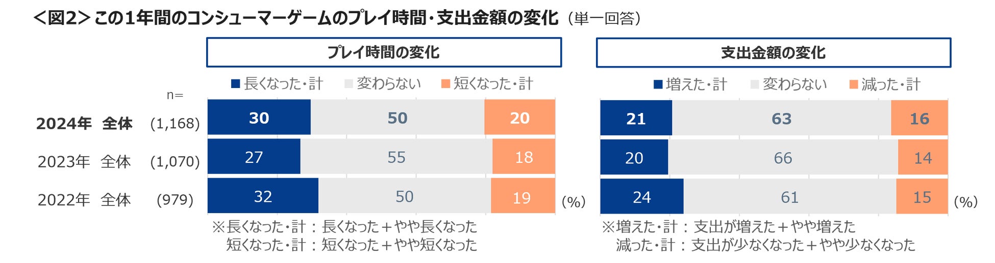 調査では、コンシューマーゲームを月1回以上プレイする1,168人を対象に、プレイ頻度や時間、支出金額、プレイしているゲームジャンル、購入媒体などを分析しました。