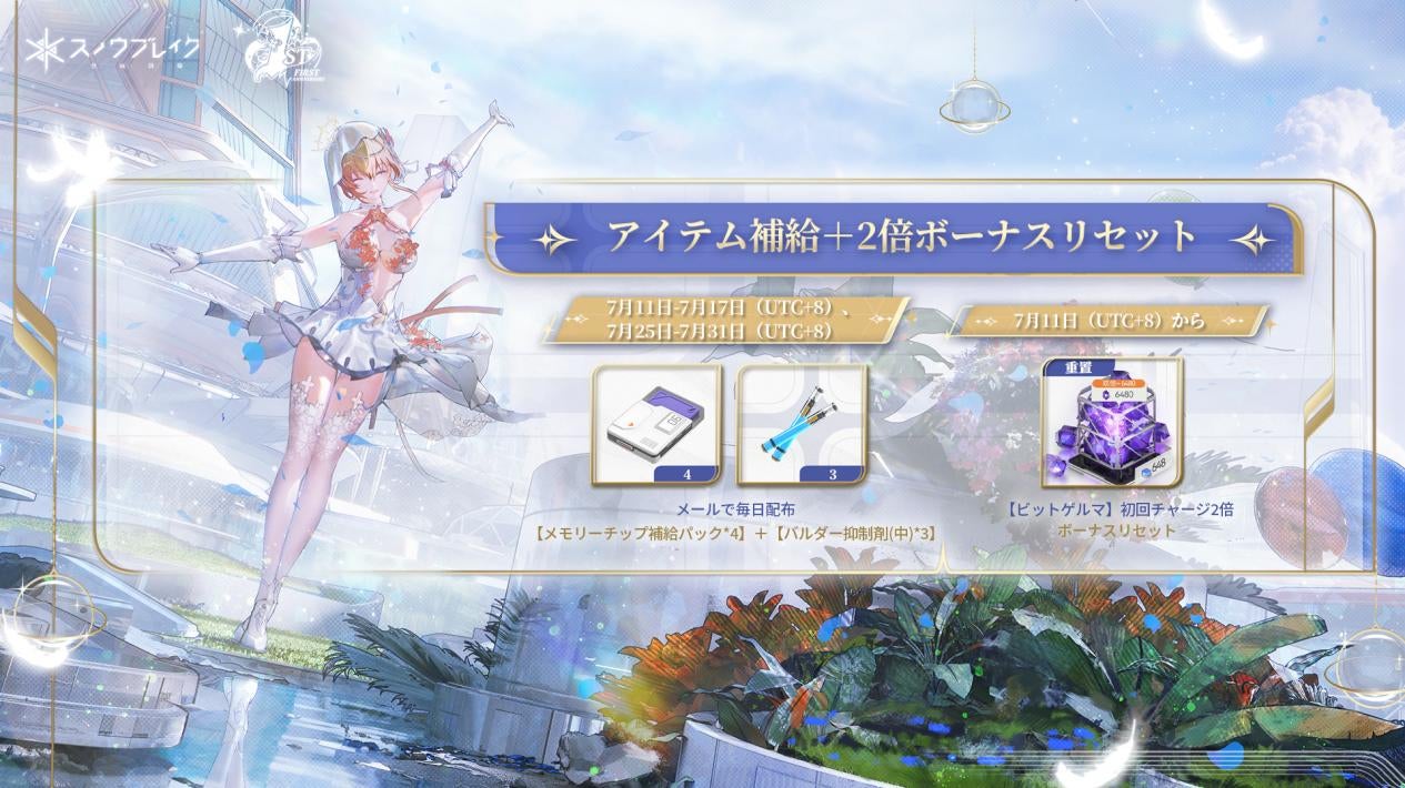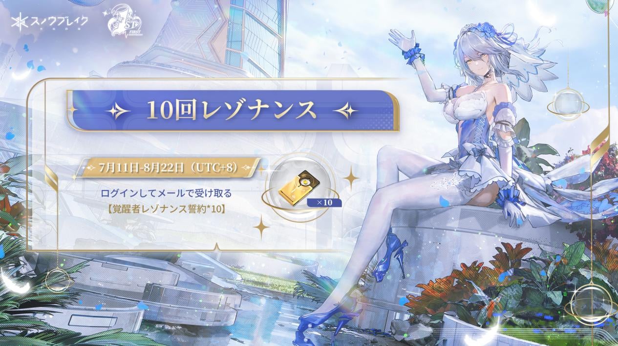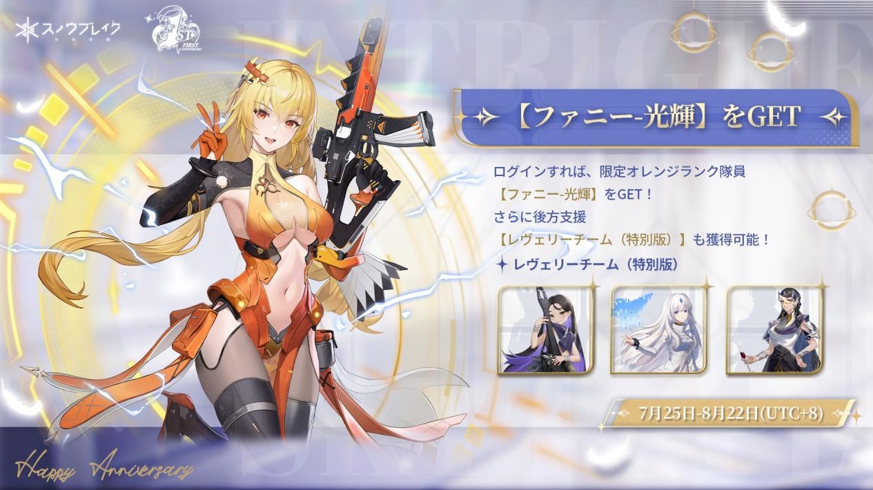 周年イベントでは、オレンジランクキャラ「ファニー – 光輝」が無料で手に入るほか、覚醒者レゾナンス誓約やメモリーチップパックなどの豪華アイテムがプレゼントされます。