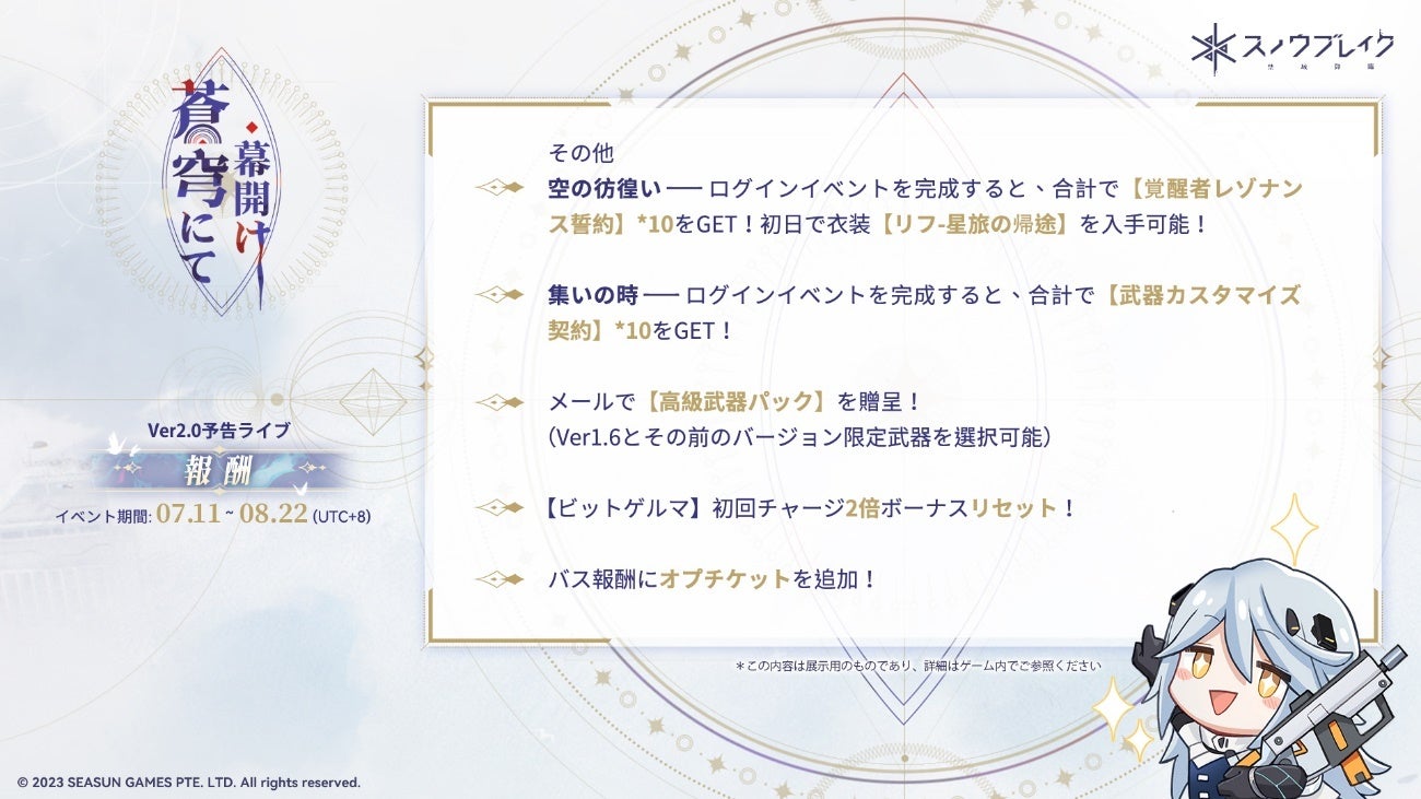 - Ver2.0「幕開け、蒼穹にて」が7月11日に公開される