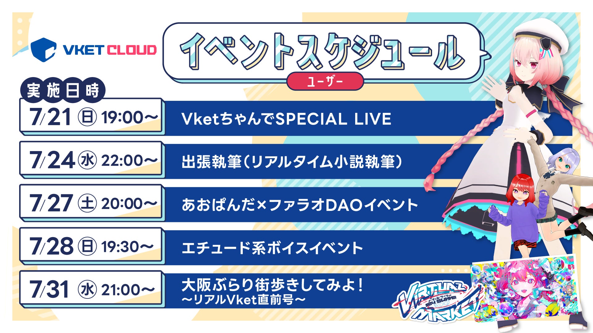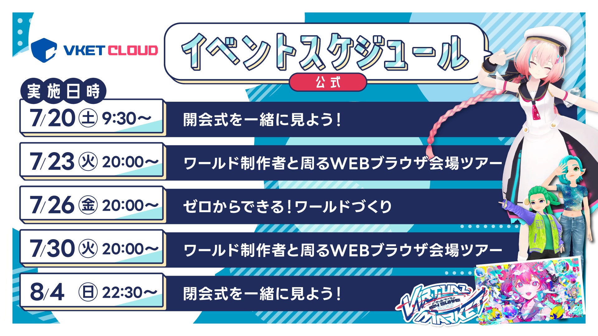 ユーザーが制作したワールドの展示や、オリジナルワールドでのスペシャルライブやゲームイベントも開催されます。