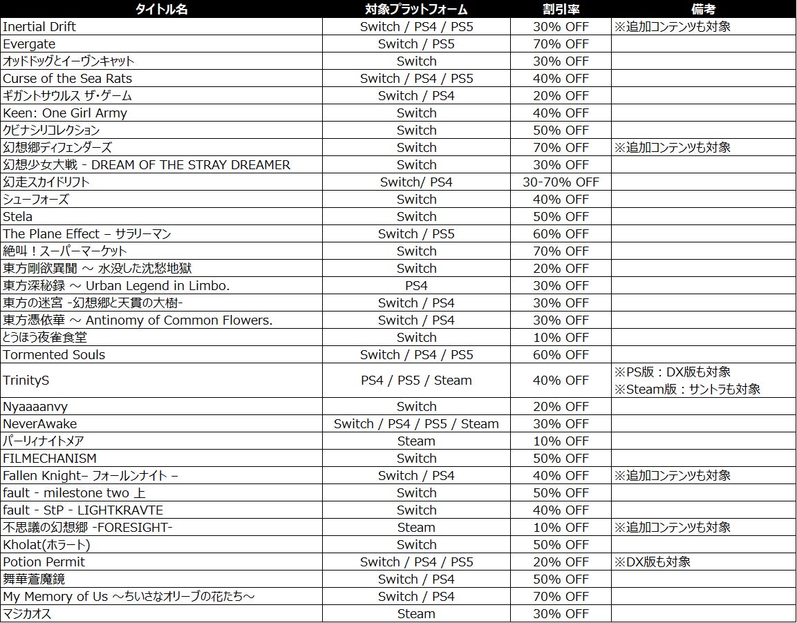 「BitSummit Drift」期間中には、各プラットフォームでセールも実施予定です。