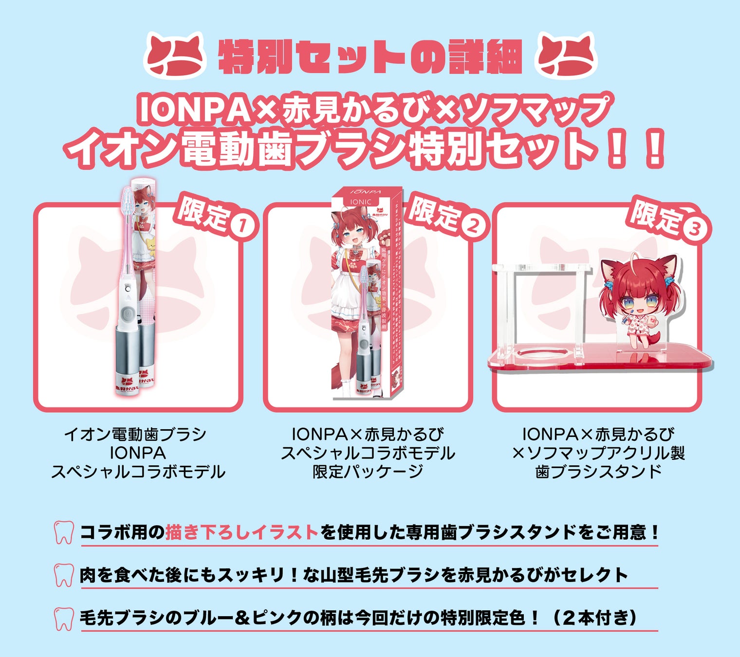 イオン歯ブラシ『IONPA』とVTuber『赤見かるび』のコラボ電動歯ブラシセットが、ソフマップにて数量限定で発売開始されました。
