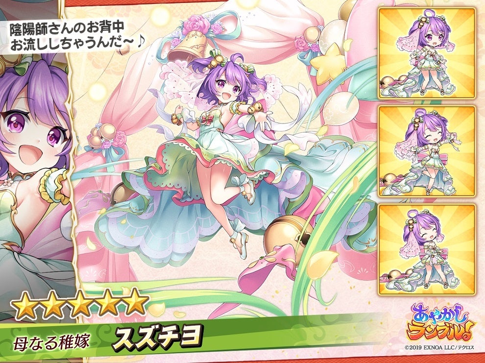 DMM GAMES『あやかしランブル!』にて、新たに期間限定「★5 ウカノミタマ」「★5 スズチヨ」が登場!さらに「真華の契り」の対象式神に「★5 マミ」が追加!