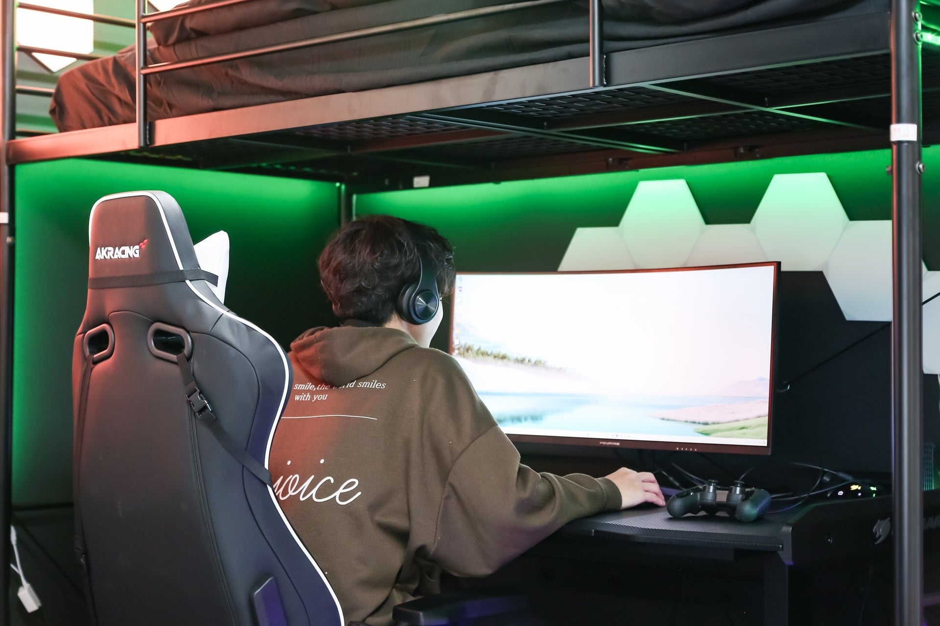「CLAN ONE」は、ゲーミングデスクやロフトベッドを標準装備し、高速インターネットや防音対策も万端です。