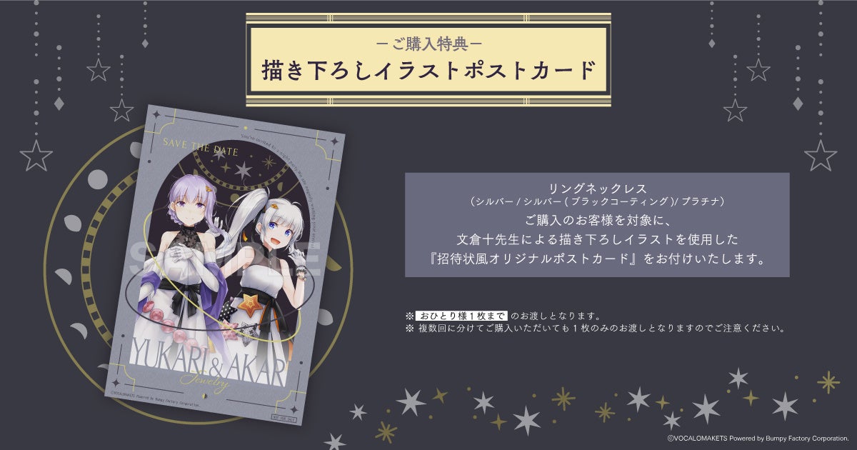 リングネックレスご購入のお客様を対象に、文倉十先生による描き下ろしイラストを使用した「招待状風オリジナルポストカード」をお付けします。