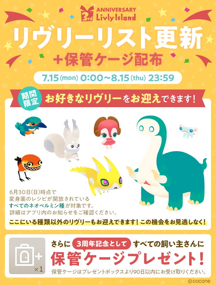 不思議な生き物と暮らせるアバターアプリ『リヴリーアイランド』が、サービス開始から3周年を迎えました。