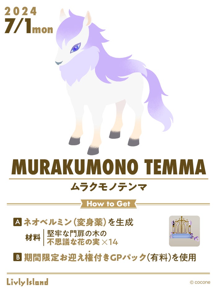 ムラクモノテンマなど、個性的なリヴリーたちが、あなたの島に仲間入りします。