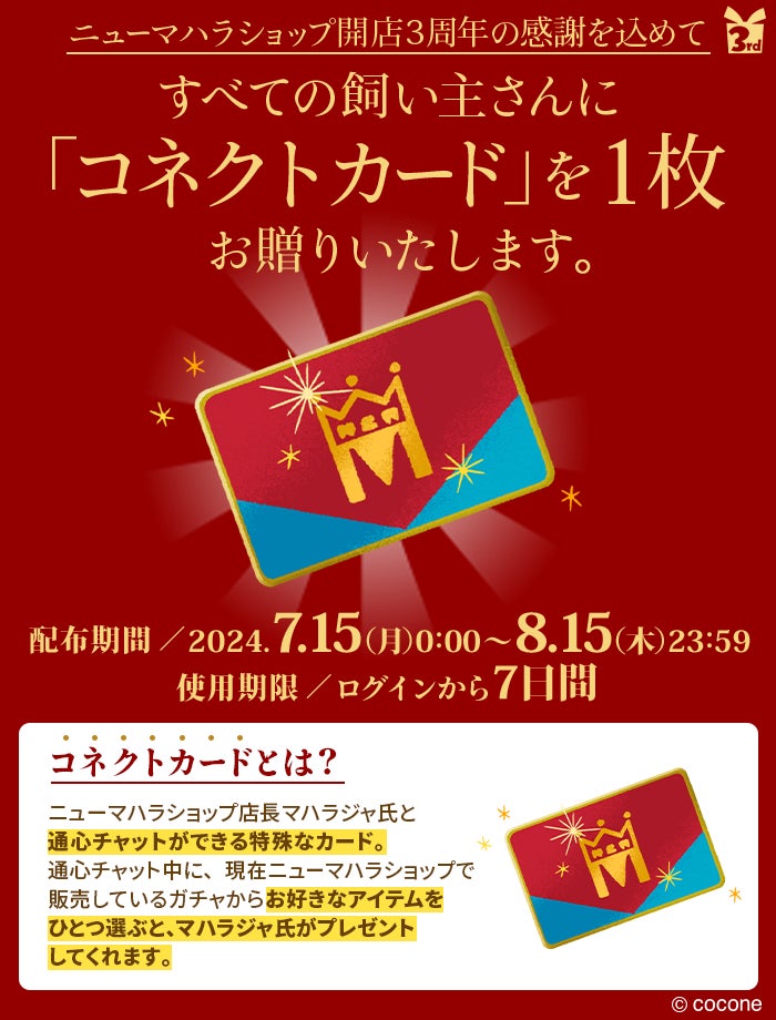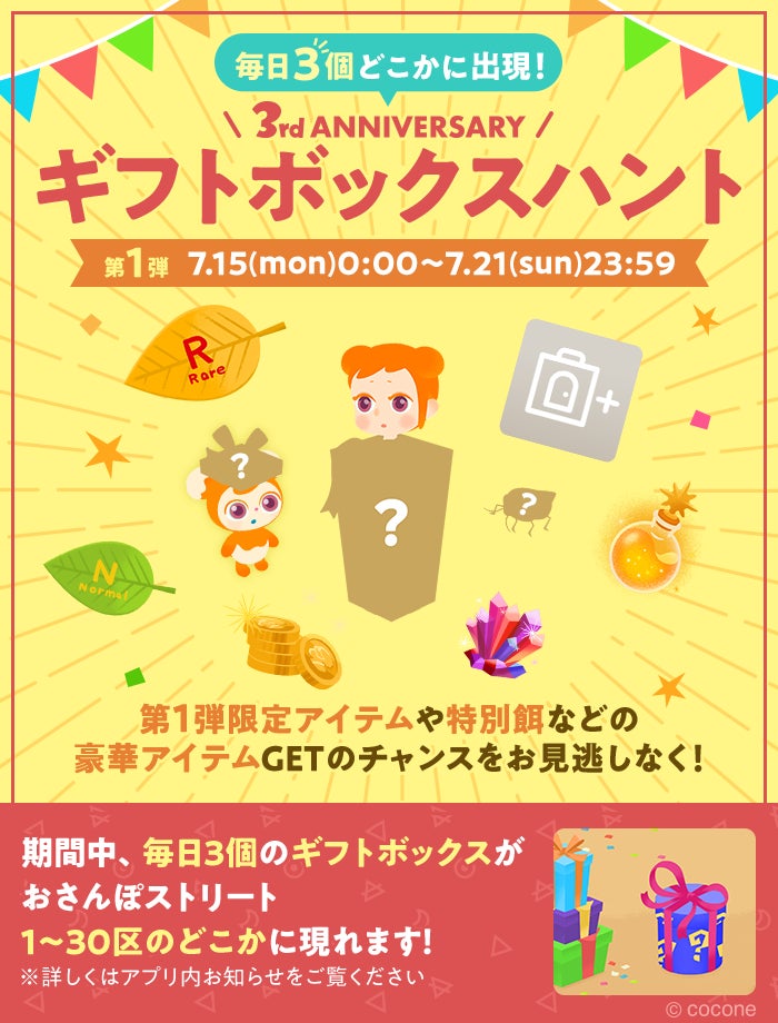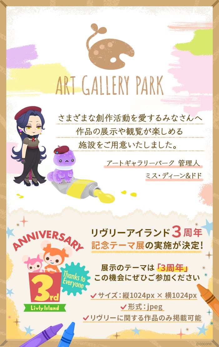 3周年を記念して、ログインボーナスや保管ケージのプレゼント、新施設「アートギャラリーパーク」のオープンなど、楽しい企画が目白押しです。