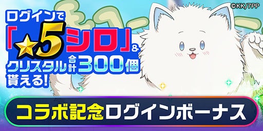 今回のコラボでは、ログインボーナスで「★5 シロ」や最大300個のクリスタルを獲得できます。