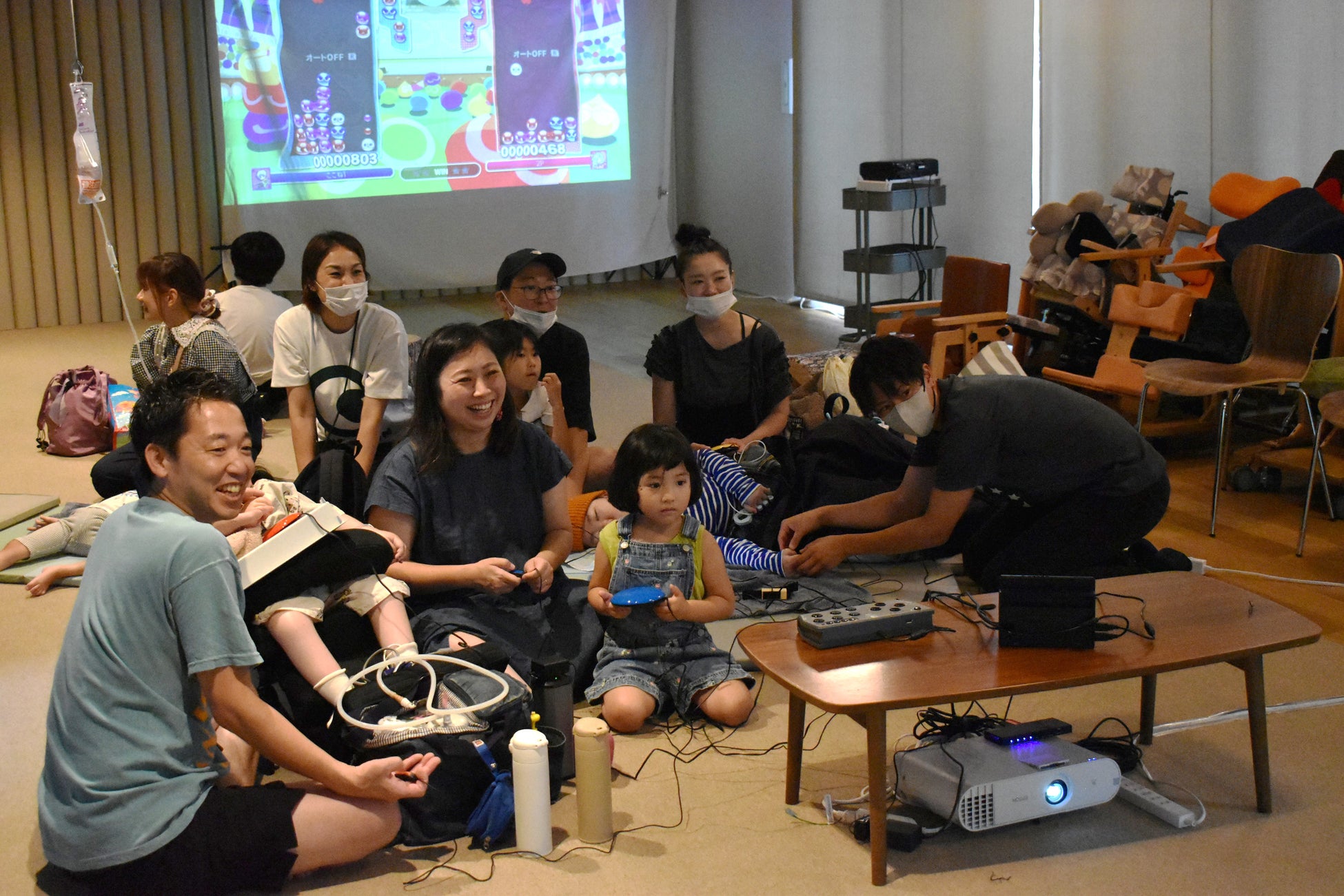 6組22名が参加し、フレックスコントローラーやスイッチを用いることで、重症心身障がい児がゲームをプレイし、家族や友達と競い合うことができました。