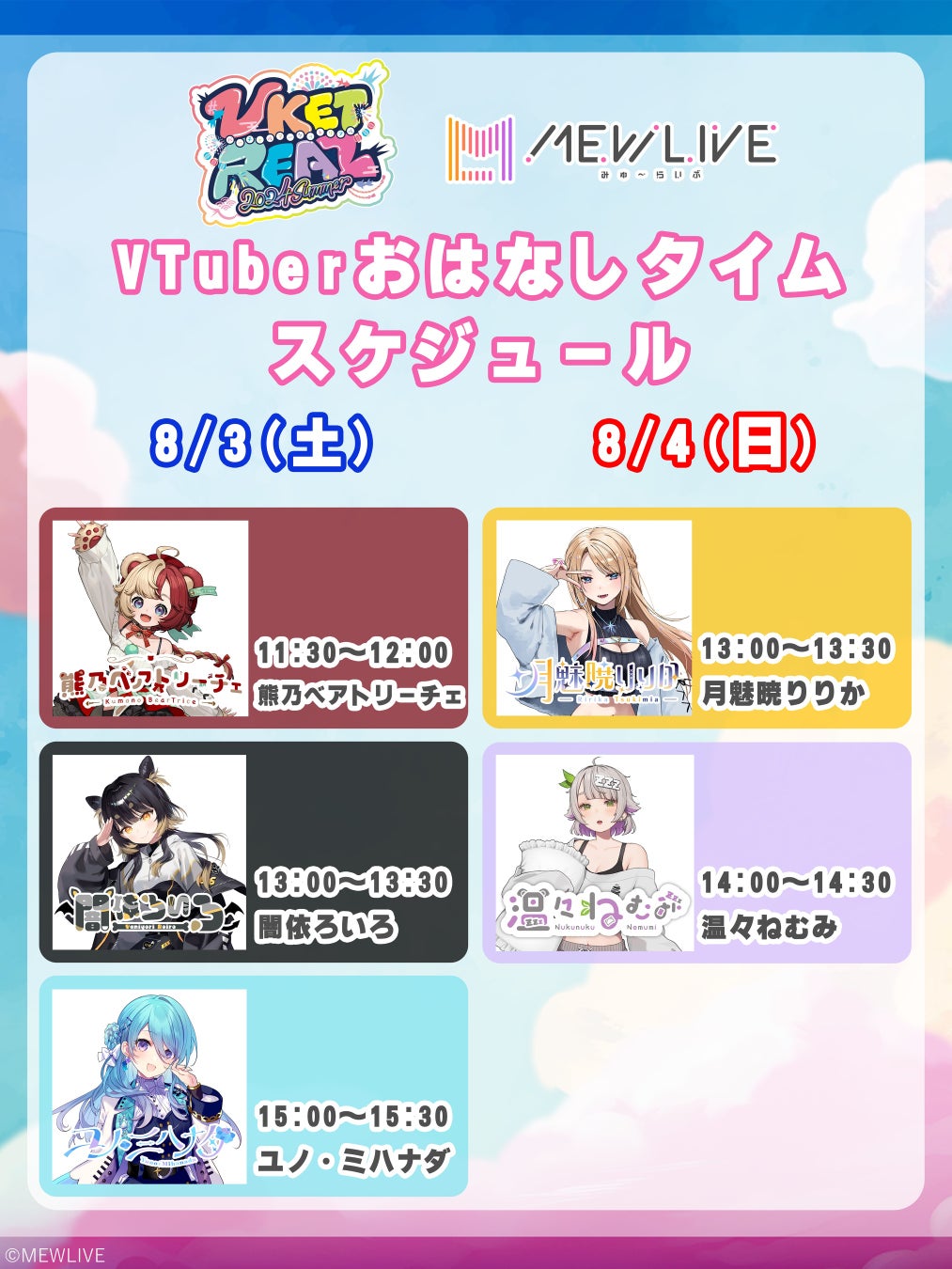- Vketちゃん1号、カナちゃん、Akyo、風璃、ムーイ