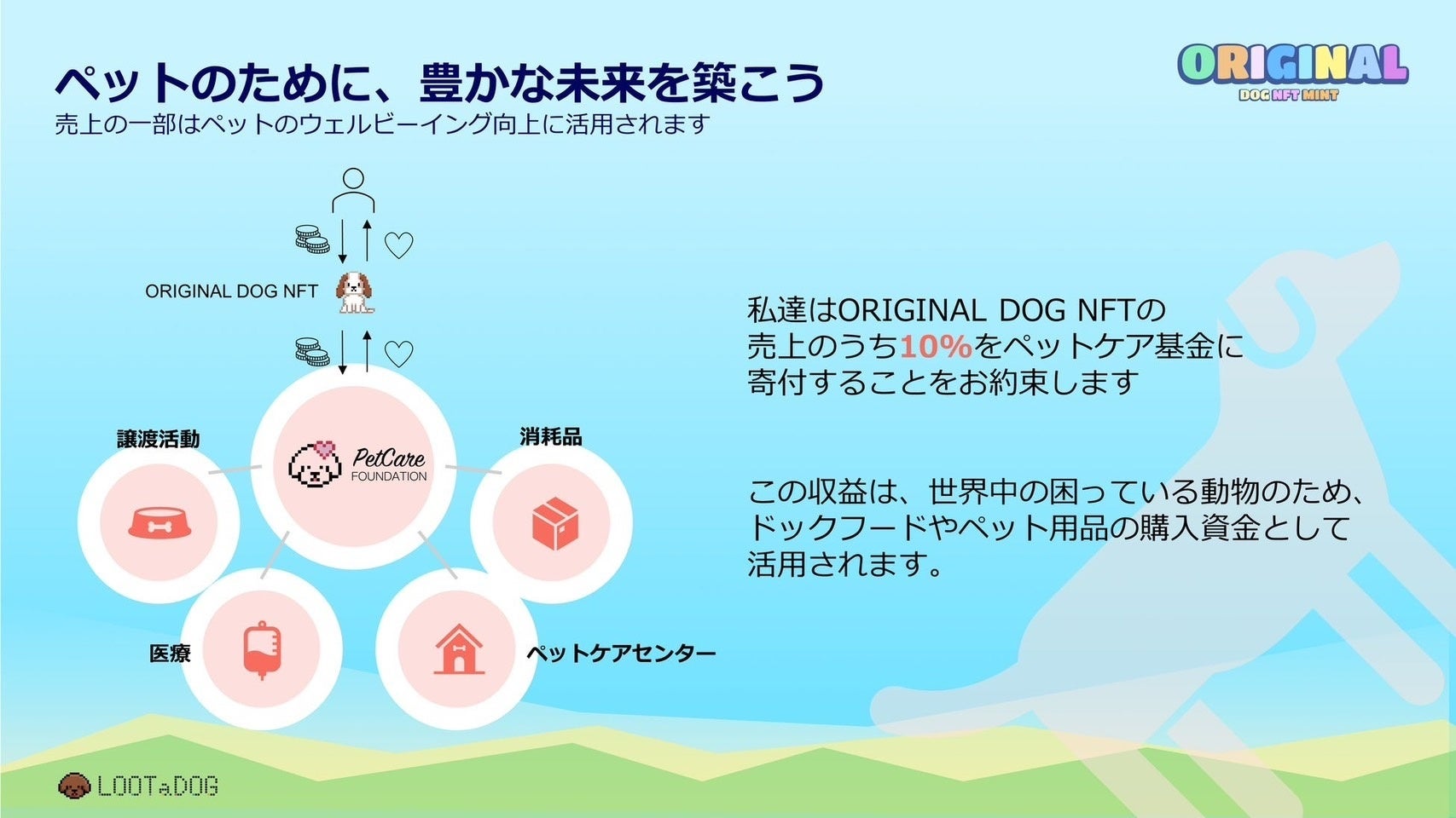 LOOTaDOGは、今後もNFTやブロックチェーンを活用し、ペットと飼い主のウェルビーイング向上と新たなペット愛護の形を模索していきます。