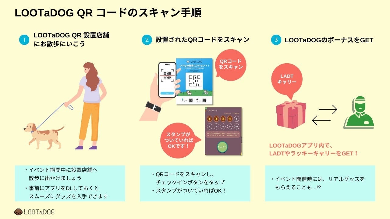 今回導入された「LOOTaDOG QR」は、アプリと連携し、店舗でQRコードを読み込むことで、アプリ内ポイントや割引サービスを受けられる機能です。