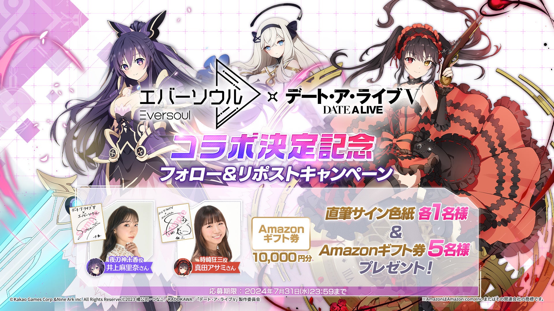 - TVアニメ『デートアライブⅤ』とのコラボイベントが、スマートフォン向け新作アプリ『エバーソウル』で7月24日から開催
