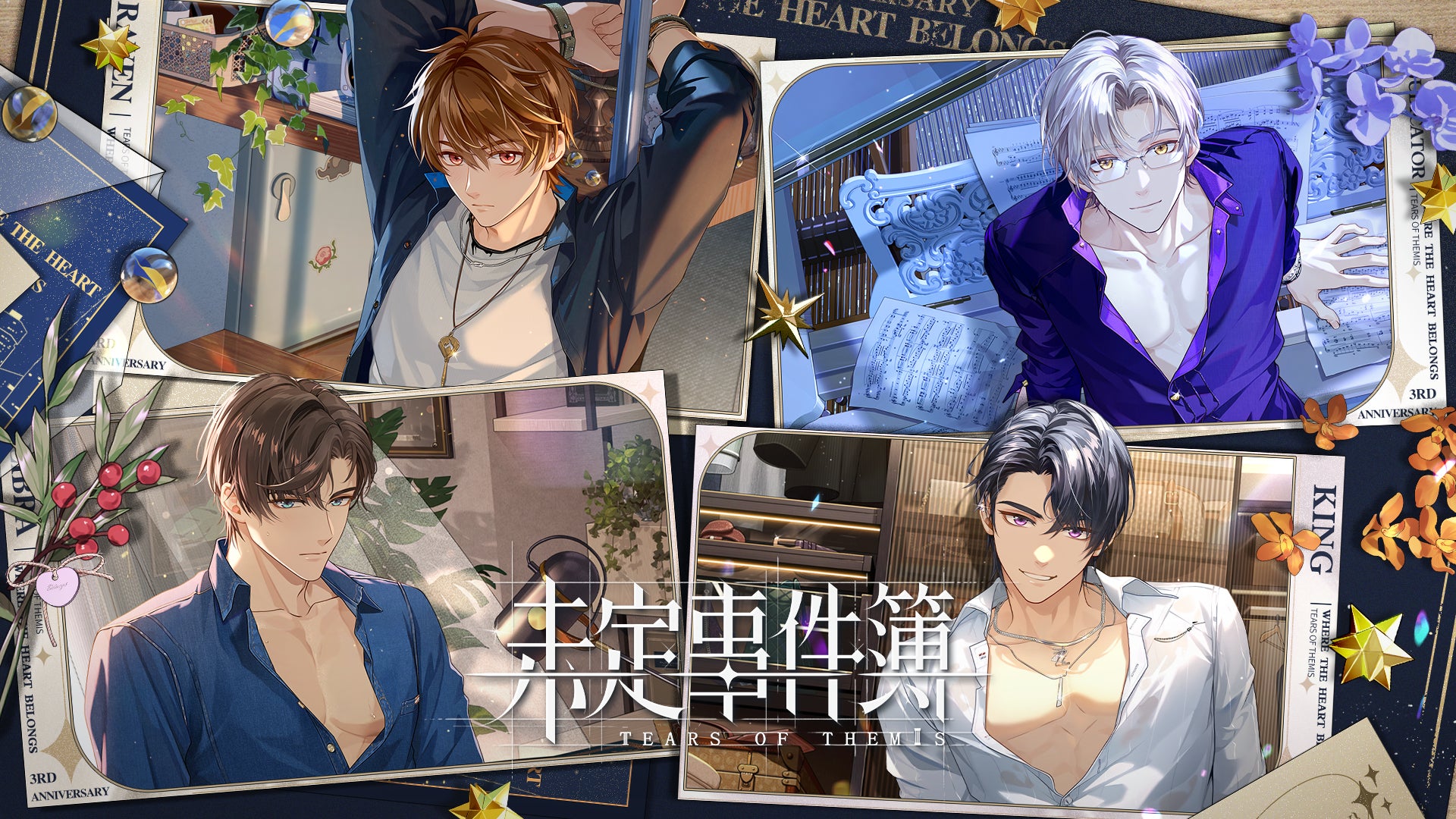『未定事件簿』は、リリース三周年を記念して、水無瀬夏彦、左京静真、森月黎、和泉景の4キャラクターそれぞれのC104スペシャルセットを販売予定です。