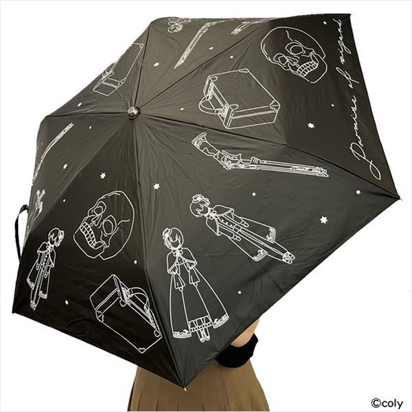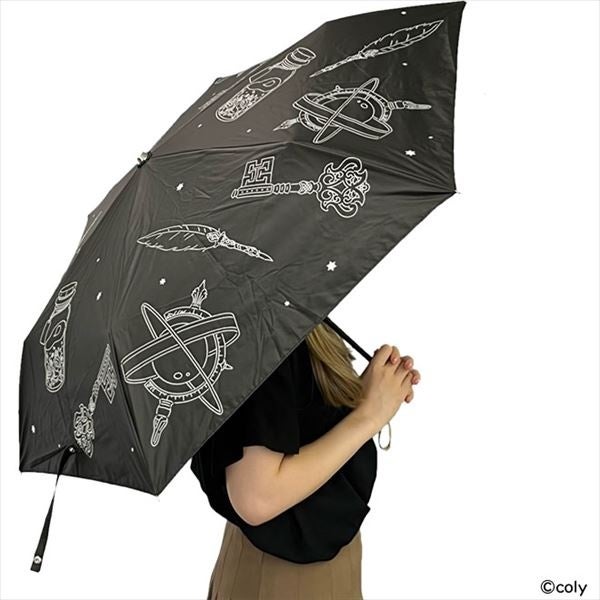 折りたたみ傘は全5種で、黒い生地にシンプルな魔道具のイラストが映えるデザインです。