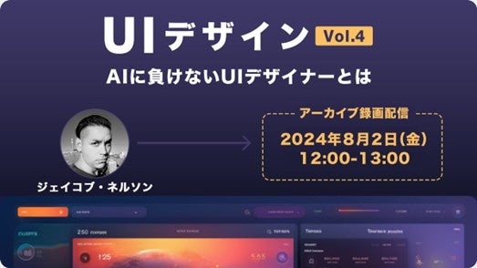 ゲーム開発やWeb制作に携わるデザイナー向けに、世界的UIデザイナーのジェイコブ・ネルソン氏によるオンラインセミナー「UIデザイン Vol.4 AIに負けないUIデザイナーとは」と「UIデザインソリューション Vol.5 AIに置き換えられないUIデザインのスキルとは」のアーカイブが、8月2日(金)と8月9日(金)に無料配信されます。