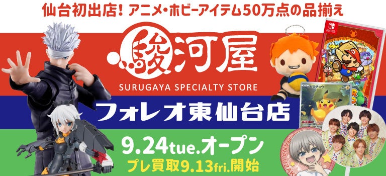 9月24日(火)、宮城県仙台市に「駿河屋 フォレオ東仙台店」がオープンします。