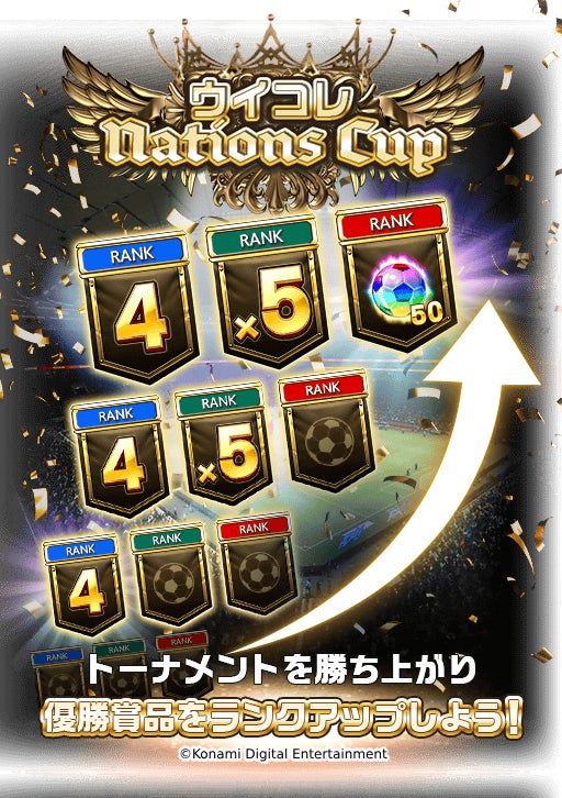 - トーナメント「ウイコレネーションズカップ」で優勝すると最大1,000個のプレミアムボールを獲得。