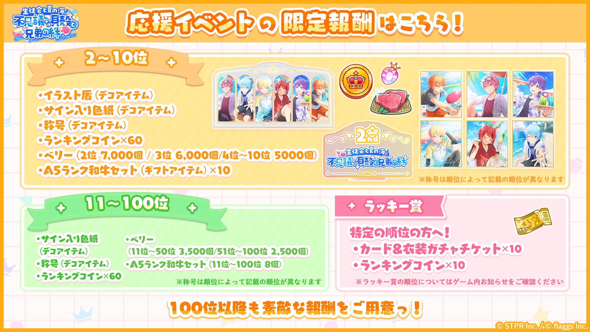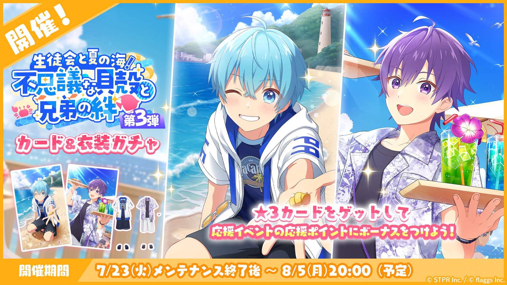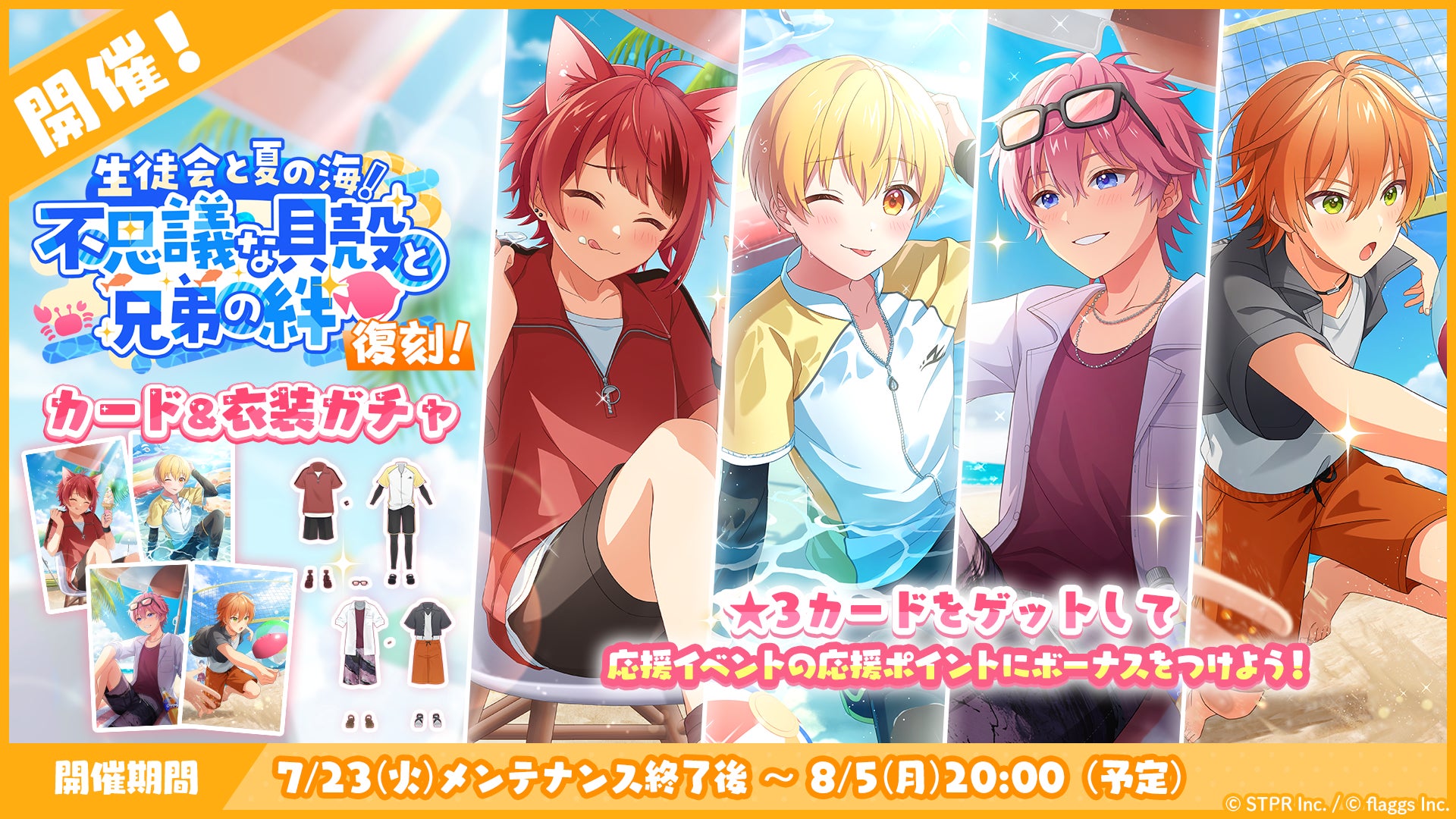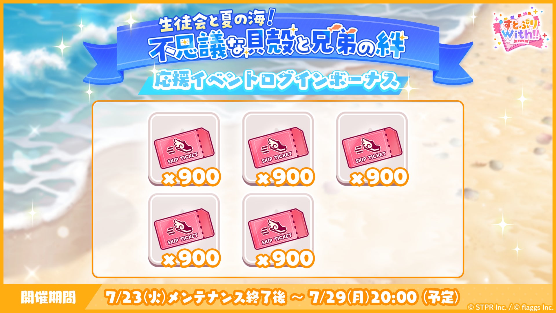 - 「生徒会と夏の海!不思議な貝殻と兄弟の絆 応援イベント」は7月23日から29日まで。