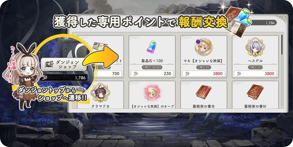 イベントでは、特定の挑戦ステージをクリアすることでイベント専用アイテムを獲得し、これを交換所でさまざまな報酬と交換できます。