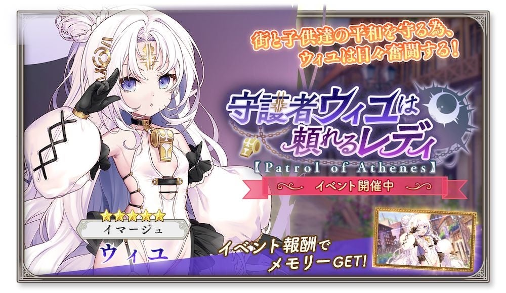 DMM GAMESが運営する『ガールズクリエイション -少女藝術綺譚-』に新コンテンツ「ダンジョン」が追加され、イベント「守護者ウィユは頼れるレディ【Patrol of Athenes】」が開催されます。