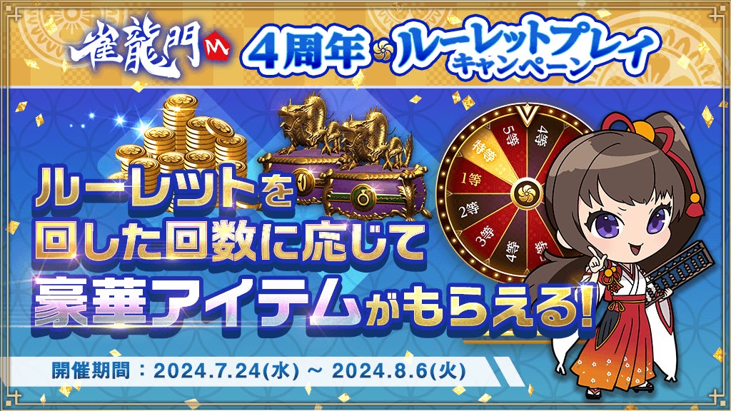 『雀龍門M』が4周年を迎え、特別なイベント「雀龍門M 4周年記念雀龍門フェスティバル!!」が始まりました。