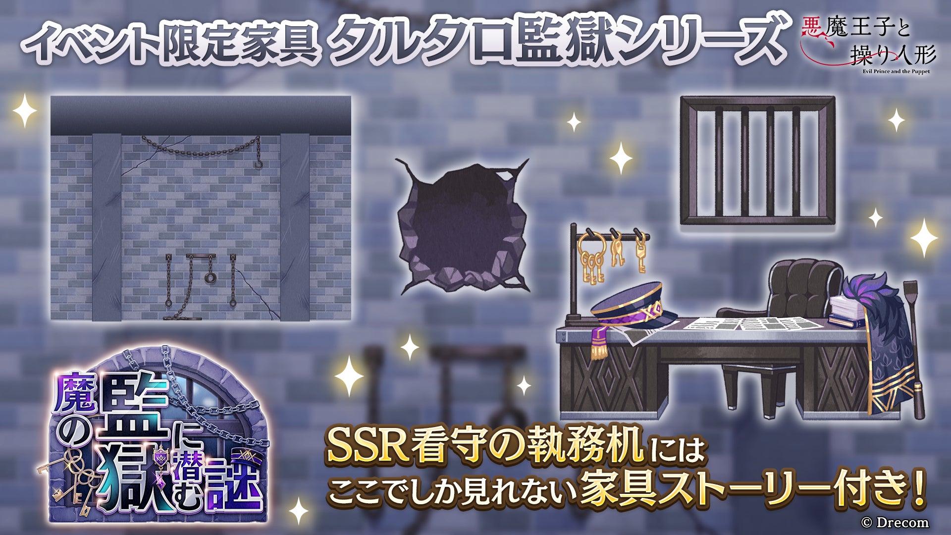 『悪魔王子と操り人形』では、2024年7月24日(水)15時より期間限定ガチャ「魔の監獄に潜む謎」を開催します。