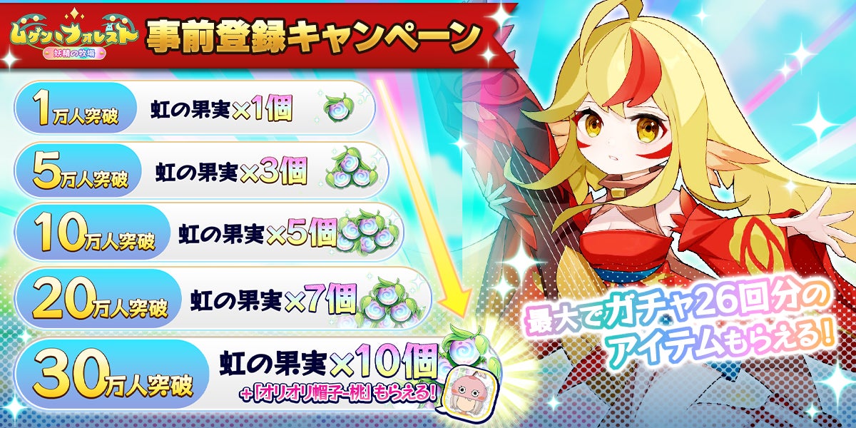 事前登録者数が30万人を突破し、登録者には特典としてガチャ26回分のアイテムやアバターが付与されます。