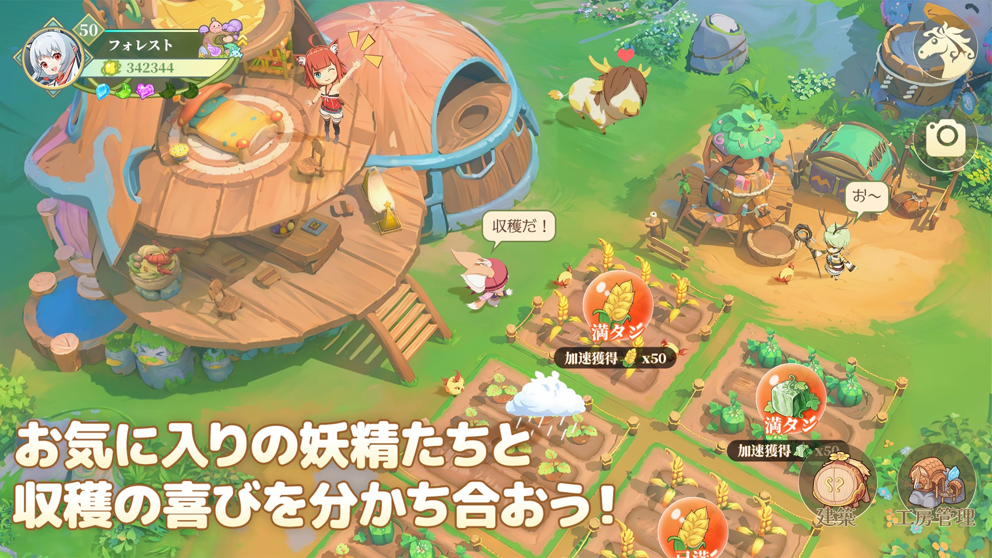 ゲーム内では、妖精たちと作物を育てたり、貿易を行ったり、友達と一緒に楽しむことができます。