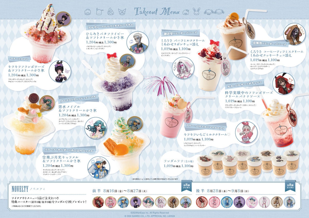 オープン初日から、人気ゲーム『IdentityV 第五人格』と『サンリオキャラクターズ』とのコラボイベントが開催され、かき氷など、夏にぴったりのコラボフードが登場します。