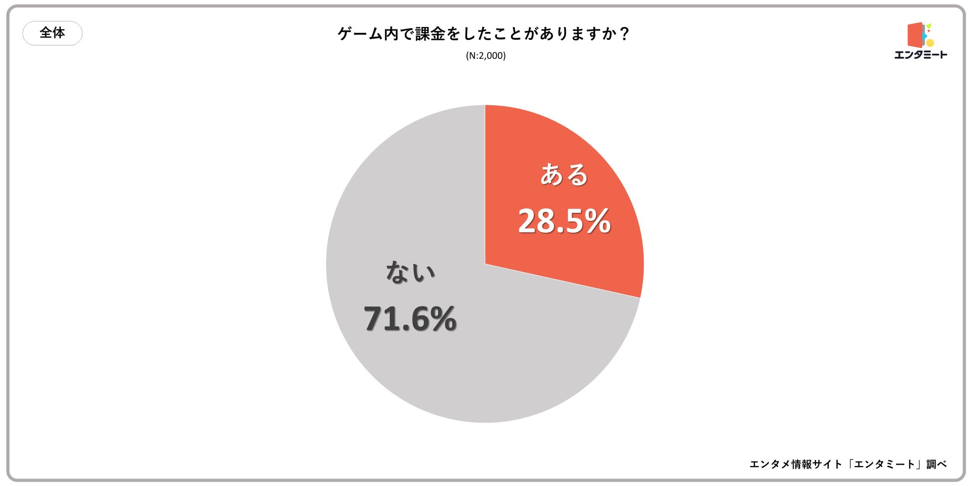 その結果、ゲーム内で課金をしたことがある人は28.5%であることが判明しました。