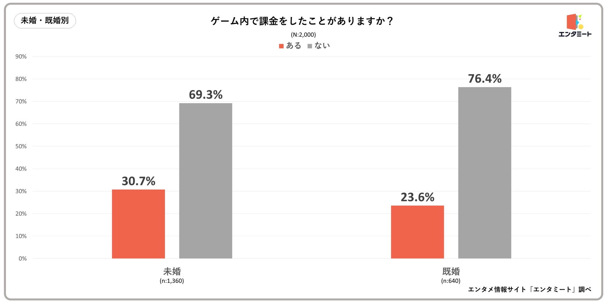 - 課金経験は30代が39.3%、未婚者30.7%に対し既婚者23.6%と差があり、生活環境が影響。