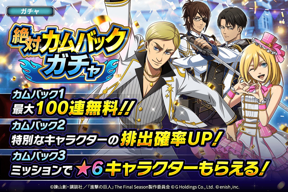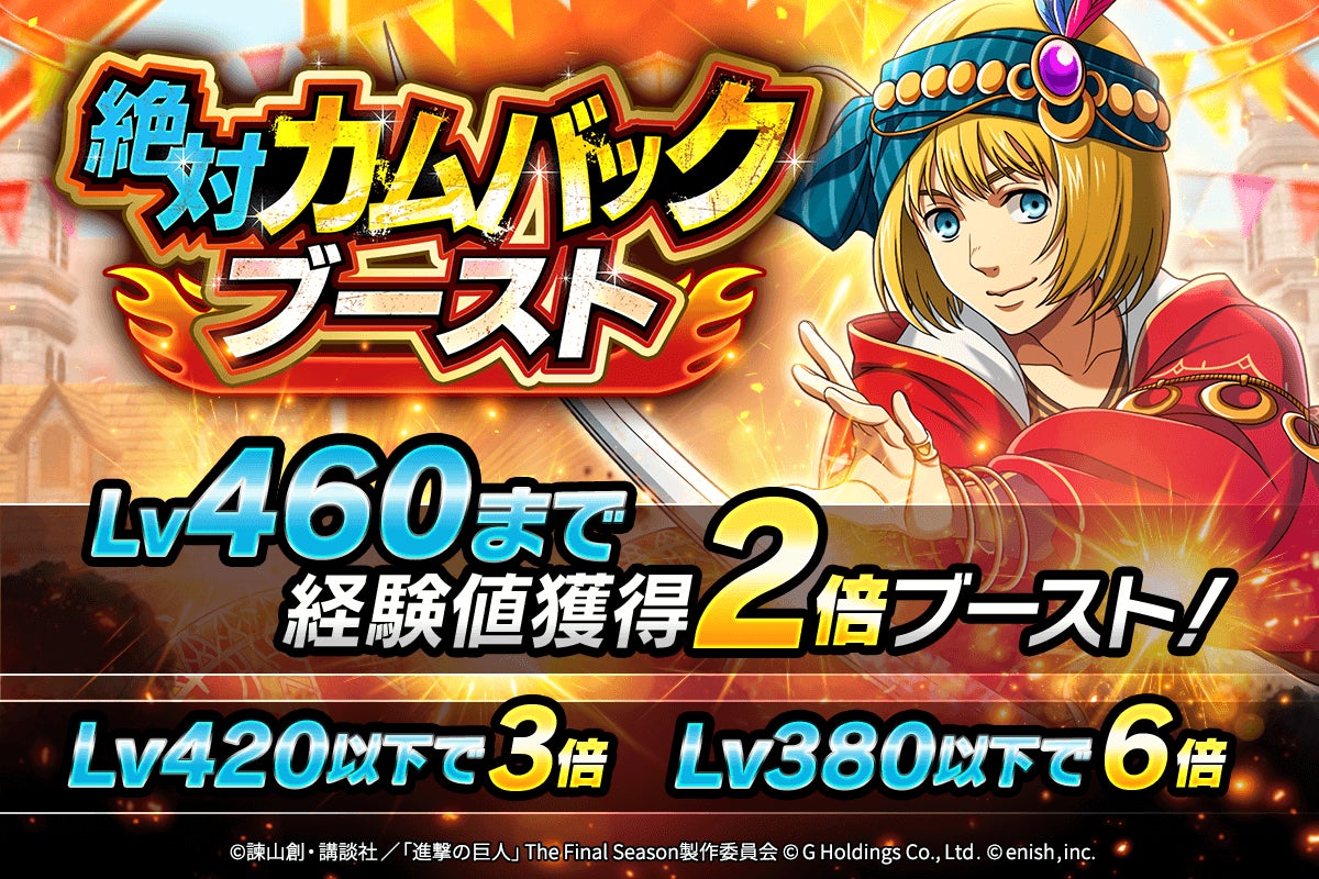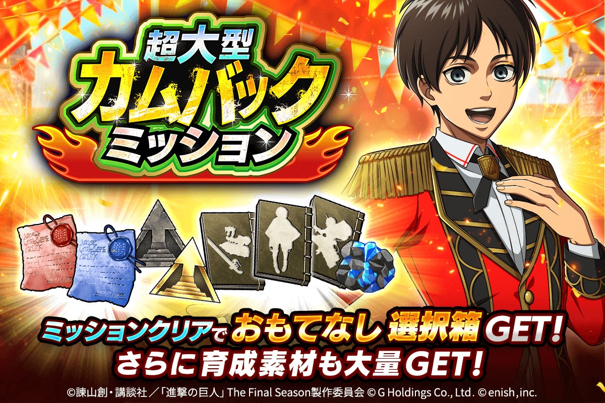 - 「進撃の巨人Brave Order」が2024年7月30日から「絶対カムバックキャンペーン」を開催。