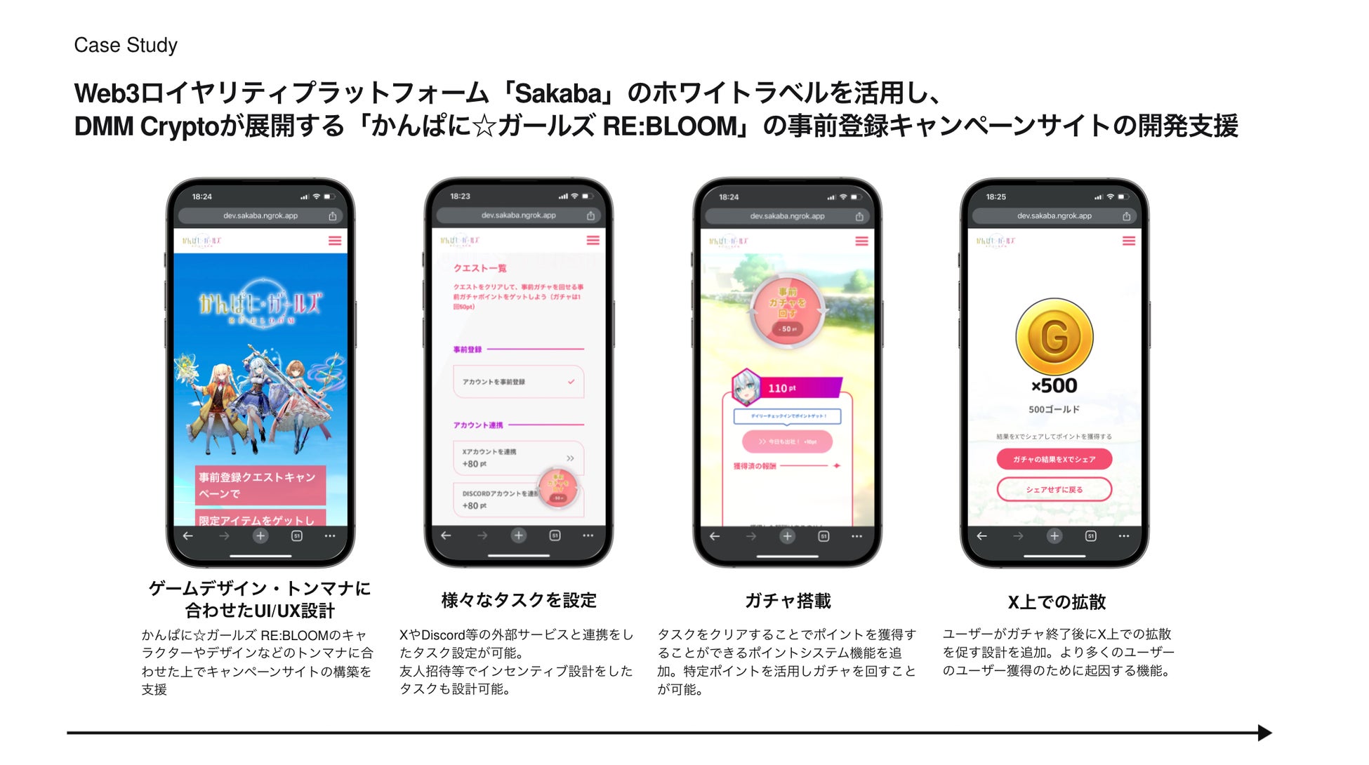 ロイヤリティプラットフォーム「Sakaba」を展開するTempura technologies株式会社が、株式会社 DMM Cryptoのブロックチェーンゲーム『かんぱに☆ガールズ RE:BLOOM』の事前登録キャンペーンサイト開発を支援しました。