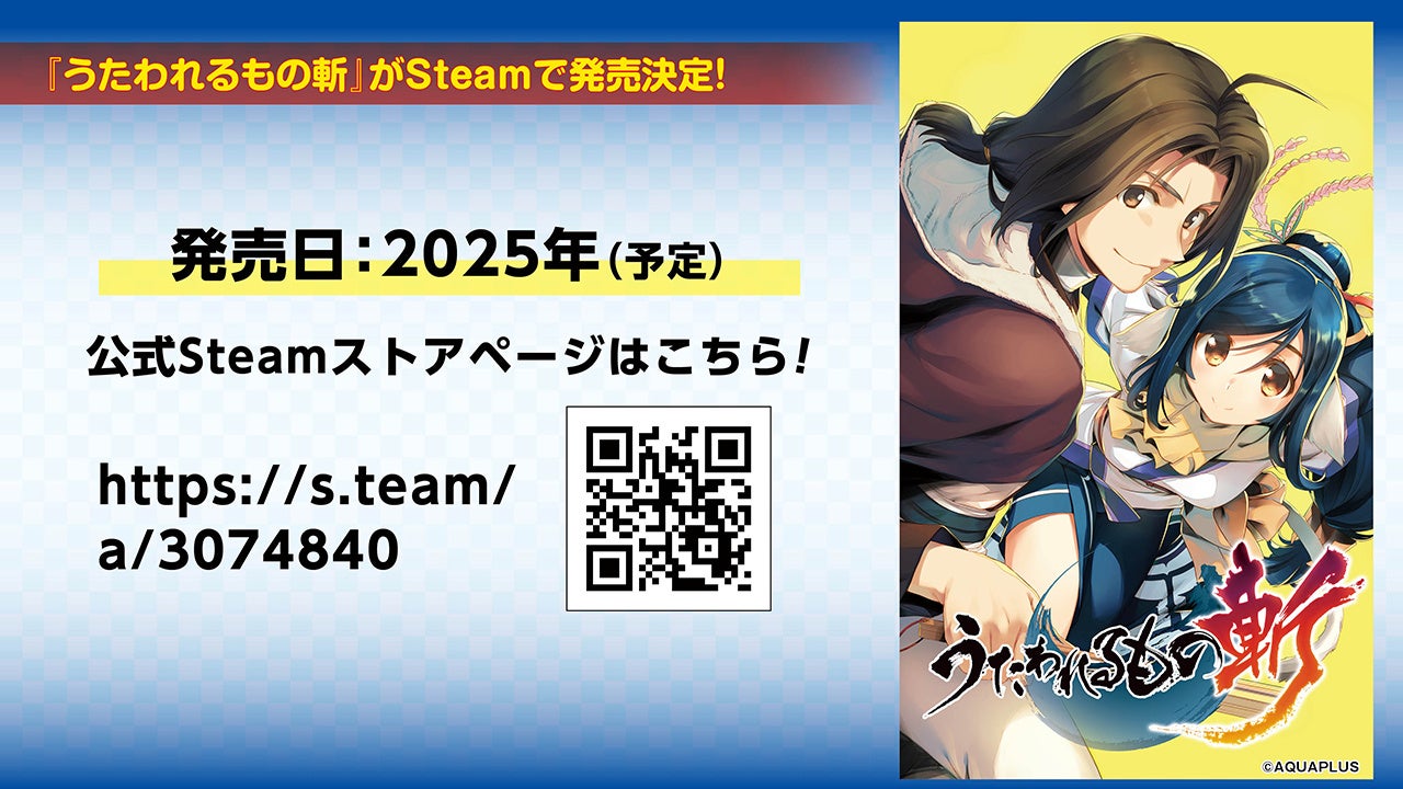 さらに、PC版『うたわれるもの斬』が2025年にSteamでリリース予定であることも明らかにされました。